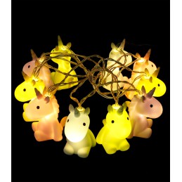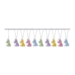 In the warm light glow 10 pastel coloured unicorns. Perfect for decorating a child"s room and living area. Operated by battery, 3 x AA. The batteries are not supplied. Gift box. From 3+ years. CAUTION! Not suitable for children under 3 years. Risk of choking due to swallowable small parts. Risk of strangulation due to the long cord. WEEE-Reg. no. DE 63434052 Length of light string: approx. 2 m Dimensions of unicorn: approx. 4 cm x 7 cm x 4 cm Gift box: approx. 24 cm x 10 cm x 10 cm