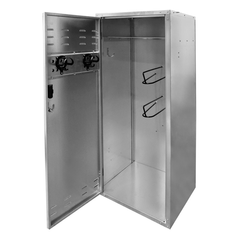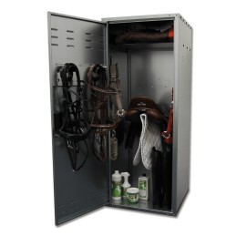 Zadelkluisje voor zelfmontage. Eenvoudig te bouwen met instructies, geschikt verpakt voor transport. Geleverd met twee zadelhouders, twee hoofdstelhouders, haken voor kleine spullen en een opbergvak.