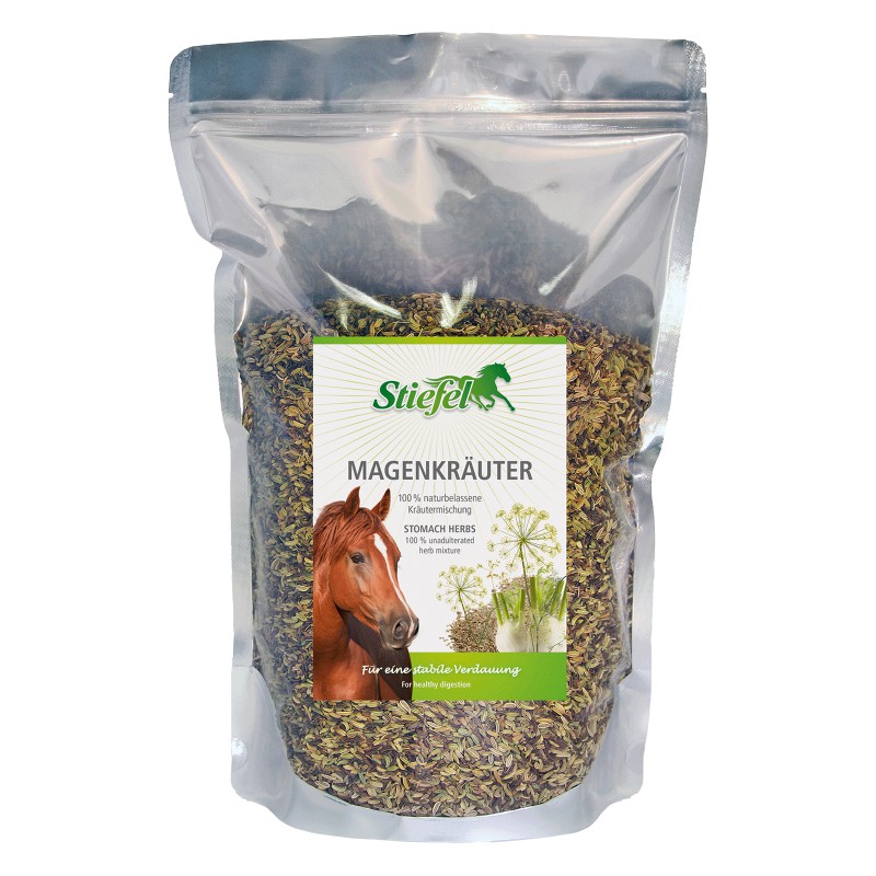 Aanvullend diervoeder voor paarden Stiefel Maagkruiden is een speciaal geselecteerd, natuurlijk kruidenmengsel bedoeld om de maag van het paard te stabiliseren. De kruiden kunnen een positief effect hebben op de natuurlijke werking van de maagwand, de spijsvertering optimaliseren en de normale werking bevorderen consistentie van de ontlasting. Voedingsaanbevelingen: Grote paarden (600 kg KGW) 30 - 50 g /dag Kleine paarden 15 - 25 g /dag Gedroogd of gebrouwen met de infusie door het voer mengen. Voedingsduur: Minimaal 20 dagen, indien nodig kan langer worden gegeven. Bijzonder aanbevolen is het voeren als vers gezette thee. Bij langdurige spijsverteringsproblemen raden wij aan om als behandeling de Stiefel Maagkruiden en Stiefel Darmkruiden af te wisselen. Opmerking antidoping- en medicatievoorschriften: 48 uur volgens de Duitse nationale federatie (stand 28.06.21) Samenstelling: 45% venkelzaad [1]25% anijszaad [1]30% karwijzaad [1] Inhoud: 1 kg